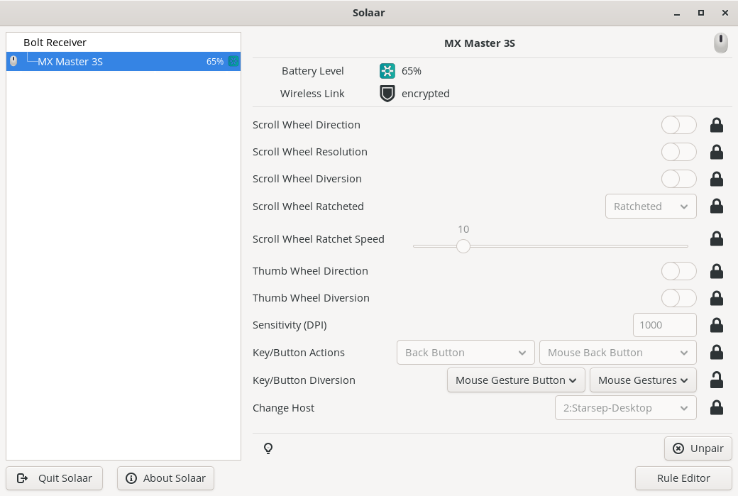 - Launch Solaar and make sure that you see your mouse settings